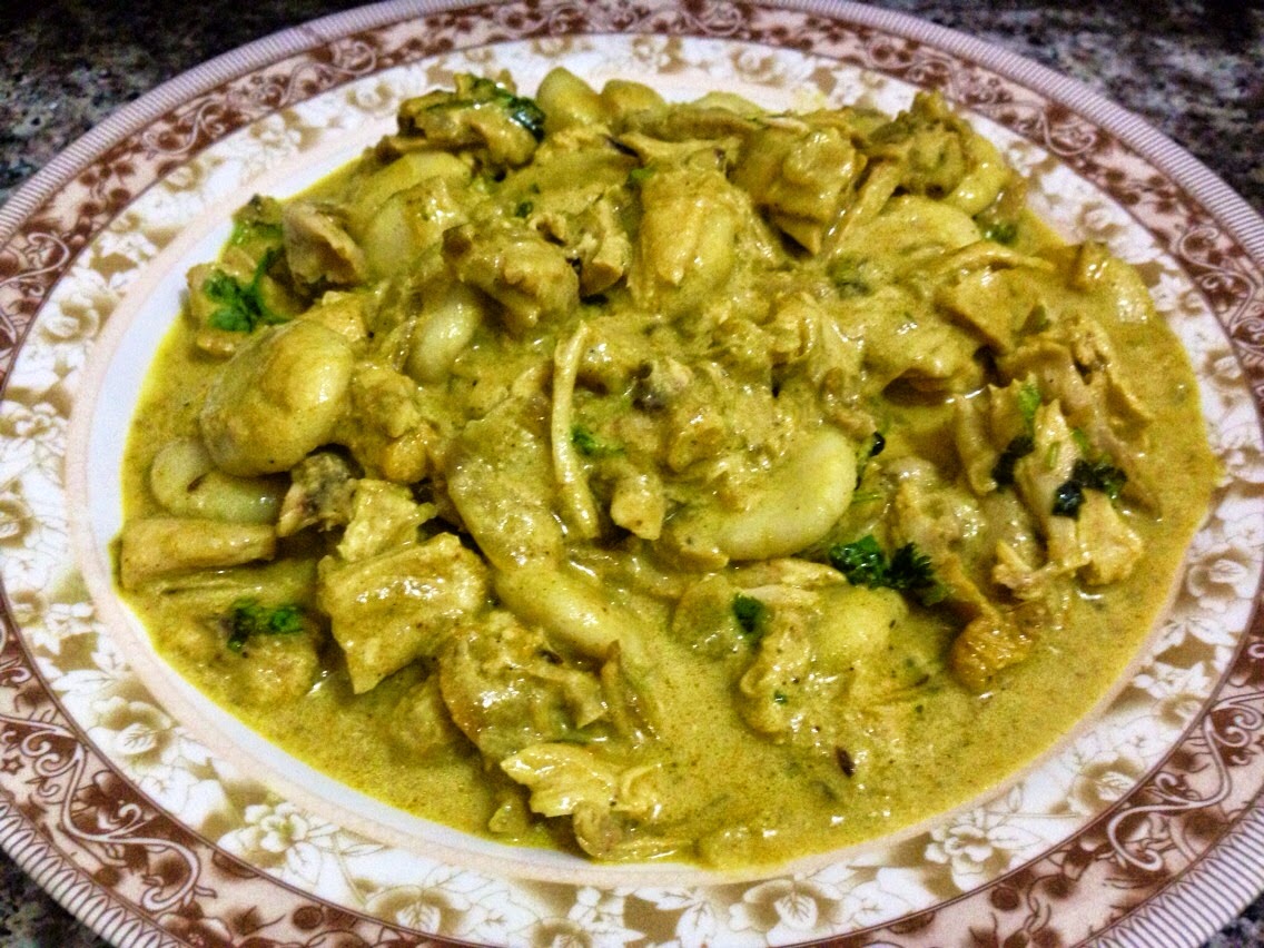 - Add thick coconut milk and cooked chicken with the chicken stock.